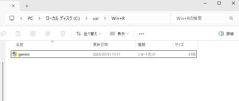 今回はカサレアルのgeminiへのショートカットを作成するため、名前を「gemini」に変更。