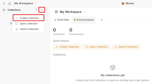 まずはコレクションを作成します。「+」アイコンを押下後、「Create collection」を押下します。