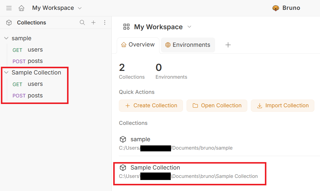 上記の操作後、エクスポートした際のコレクション名が表示されます。